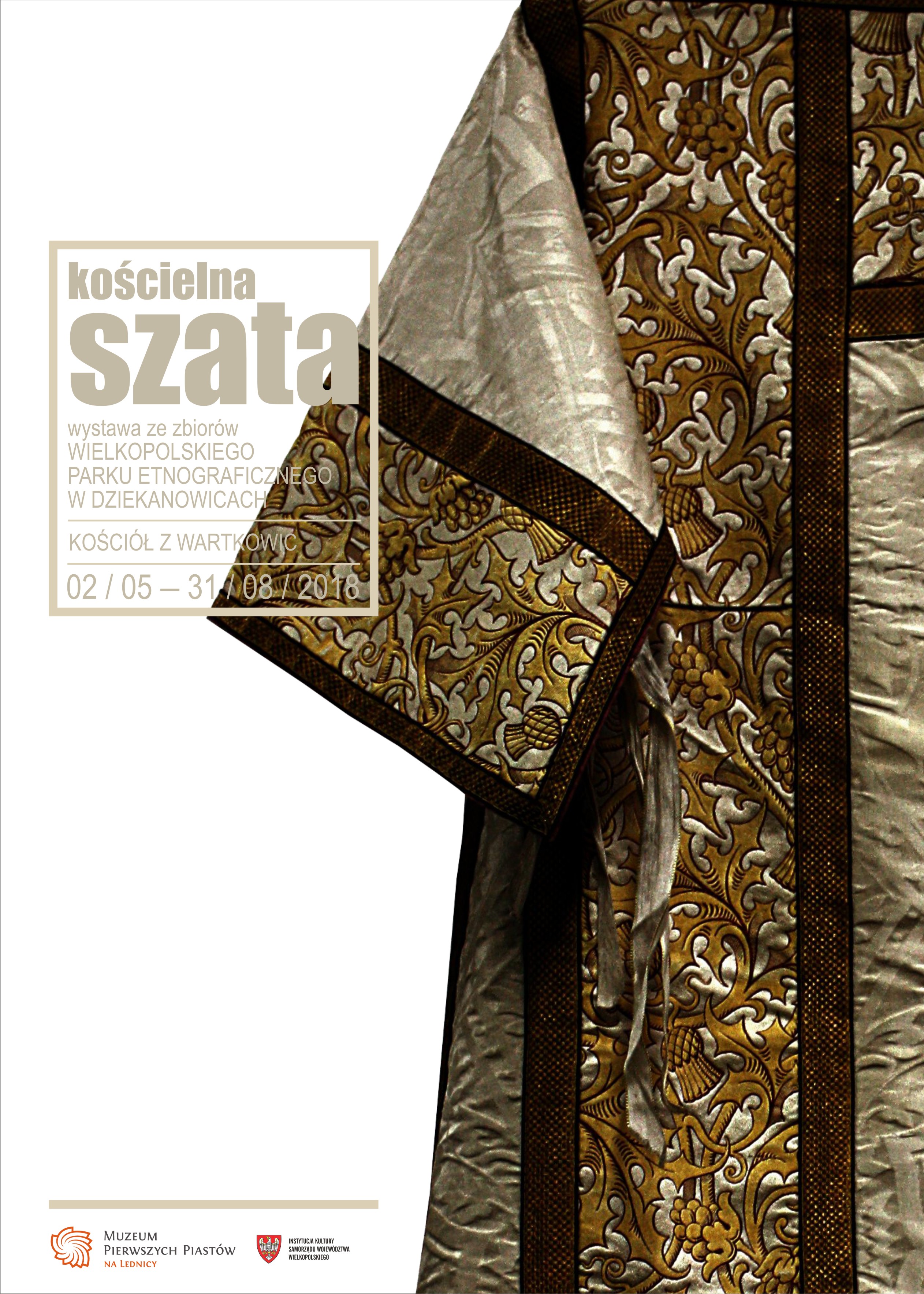 Wystawa w zabytkowym kościele z Wartkowic prezentuje wybór szat używanych w liturgii Kościoła rzymskokatolickiego, znajdujących się w zbiorach Wielkopolskiego Parku Etnograficznego w Dziekanowicach. Wystawione szaty powstały w okresie od końca XIX do połowy XX wieku. Przykłady szat i ich elementów umożliwiają zapoznanie się z funkcją, symboliką i artystyczną formą szat liturgicznych użytkowanych przez wiejskich proboszczów i wikarych z wielkopolskich parafii. Można poznać rodzaje szat – ornat, kapę, dalmatykę – oraz ich elementy: stułę, tuwalnię czy manipularz. Można też dowiedzieć się, jakie liturgiczne kolory szat występują w liturgii, jaka jest ich symbolika i jakim okresom roku liturgicznego oraz świętom są przyporządkowane. Szaty szyto z ozdobnych tkanin: jedwabiu, aksamitu, atłasu, brokatu, adamaszku, żakardów, a zdobiono galonami, bortami, aplikacjami, wzorami haftowanymi z użyciem metalowych nici, sznurków, klejnotów. Należy dodać, że niektórych form eksponowanych szat nie spotykamy już w dzisiejszej liturgii. Reformy Drugiego Soboru Watykańskiego (1962-1965) odcisnęły piętno na liturgii, wystroju kościołów oraz wprowadziły pewne zmiany w wyglądzie szat liturgicznych. Zmienił się krój ornatów, a niektóre elementy, jak np. manipularz, wycofano z użycia. Inne są też rodzaje używanych tkanin i ornamentyka, przez co współczesne szaty stały się lżejsze.