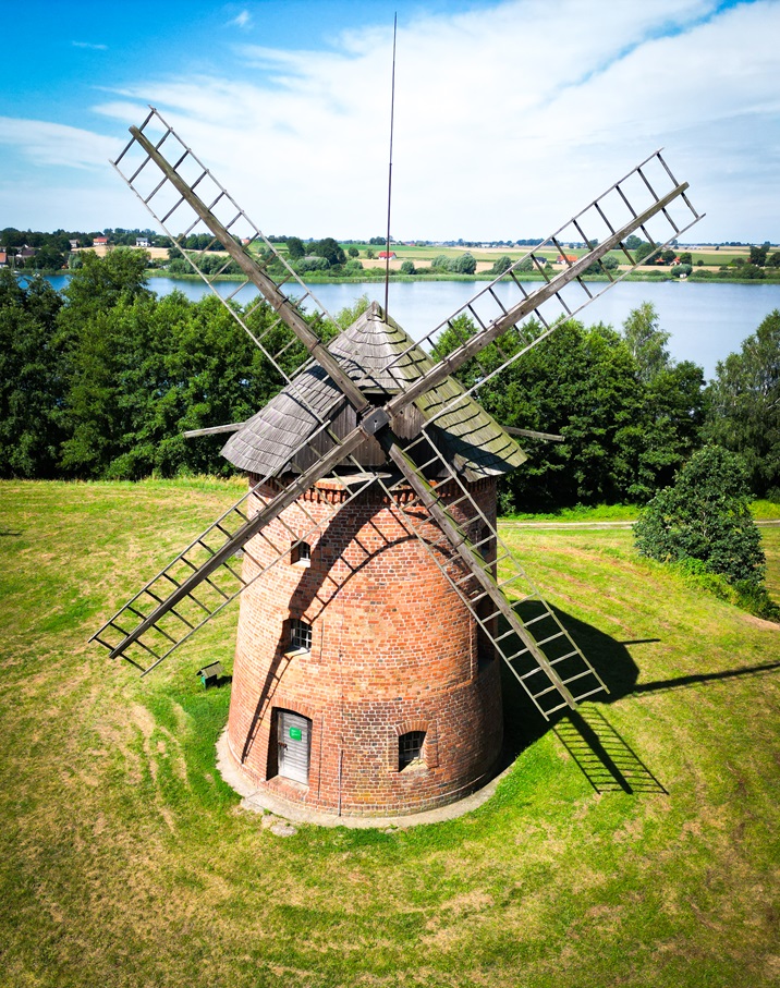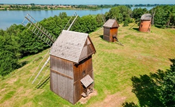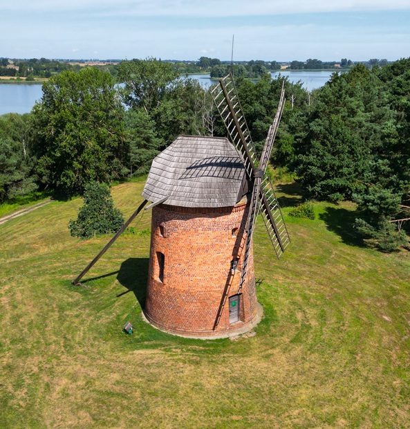 Wiatrak z Mierzewa (Śr. Wielkopolska). Wiatrak typu „koźlak” drewniany, ze słupem pośrodku posadowionym na skrzyżowanych belkach, ściany oszalowane. Wzniesiony został w 1801 roku przez budowniczego Dawida Seidlera w Gnieźnie, po czym w 1850 roku przeniesiony do wsi Mierzewo a w 1977 roku do muzeum. Wewnątrz znajdują się dwa złożenia kamieni: jeden służy do przemiału zboża na śrutę, drugi do przemiału zboża na mąkę.