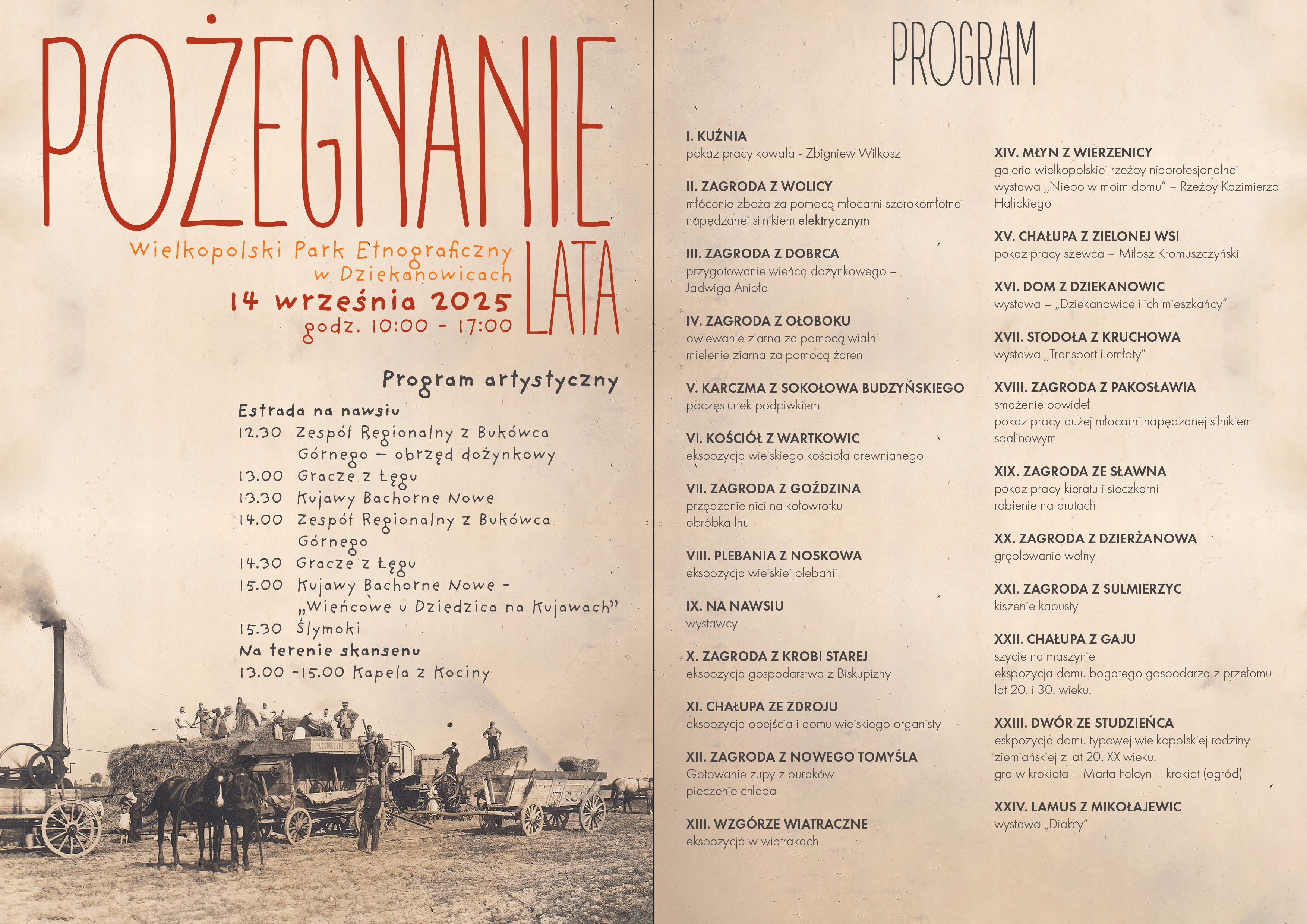 Wielkopolski Park Etnograficzny serdecznie zaprasza na kolejne wydarzenie plenerowe. „Pożegnanie Lata” to impreza adresowana do wszystkich, którzy chcą poznać dawne zajęcia i zwyczaje gospodarskie na wsi.