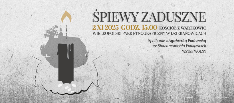 Wielkopolski Park Etnograficzny w Dziekanowicach zaprasza 2 listopada do kościoła z Wartkowic na tradycyjne śpiewy zaduszne. O godz. 15.00 wydarzenie poprzedzi spotkanie z Agnieszką Podemską ze Stowarzyszenia Podkoziołek, która opowie o obrzędach związanych z tym okresem. Dowiemy się m.in., dlaczego „Dziady” dla Słowian są do dziś tak ważne.
