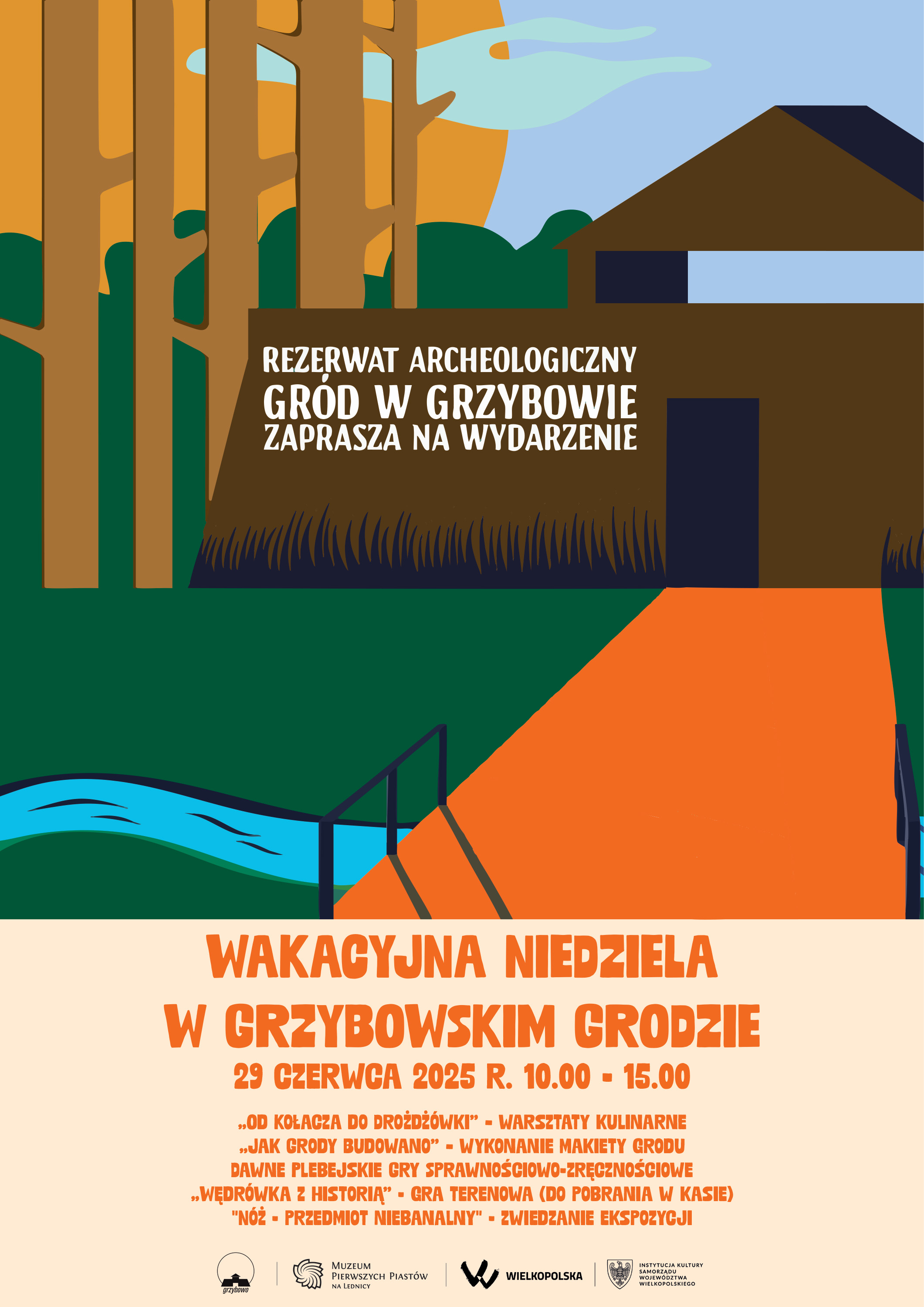 Rezerwat Archeologiczny Gród w Grzybowie serdecznie zaprasza na "Wakacyjną Niedzielę", 29 czerwca w godz. 10:00-15:00. W programie wydarzenia warsztaty kulinarne "Od kołacza do drożdżówki", wykonanie makiety grodu "Jak grody budowano", dawne plebejskie gry sprawnościowo-zręcznościowe, gra terenowa "Wędrówka z historią" czy zwiedzanie ekspozycji "Nóż - przedmiot niebanalny". Zapraszamy!