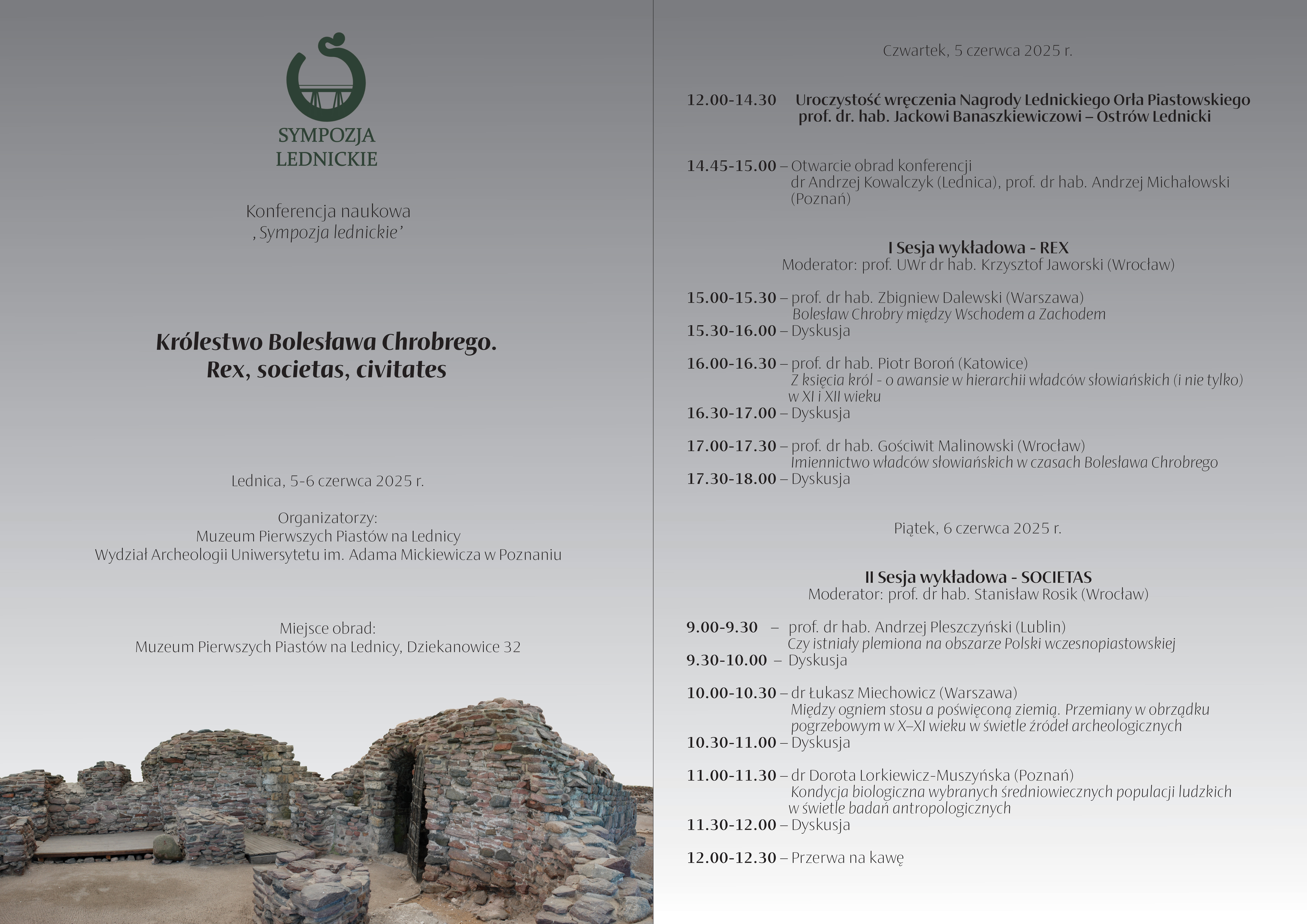 Muzeum Pierwszych Piastów na Lednicy oraz Wydział Archeologii Uniwersytetu im. Adama Mickiewicza w Poznaniu zapraszają na wyjątkowe wydarzenie naukowe inaugurujące cykl Sympozjów lednickich interdyscyplinarnych spotkań poświęconych problematyce wczesnego średniowiecza.