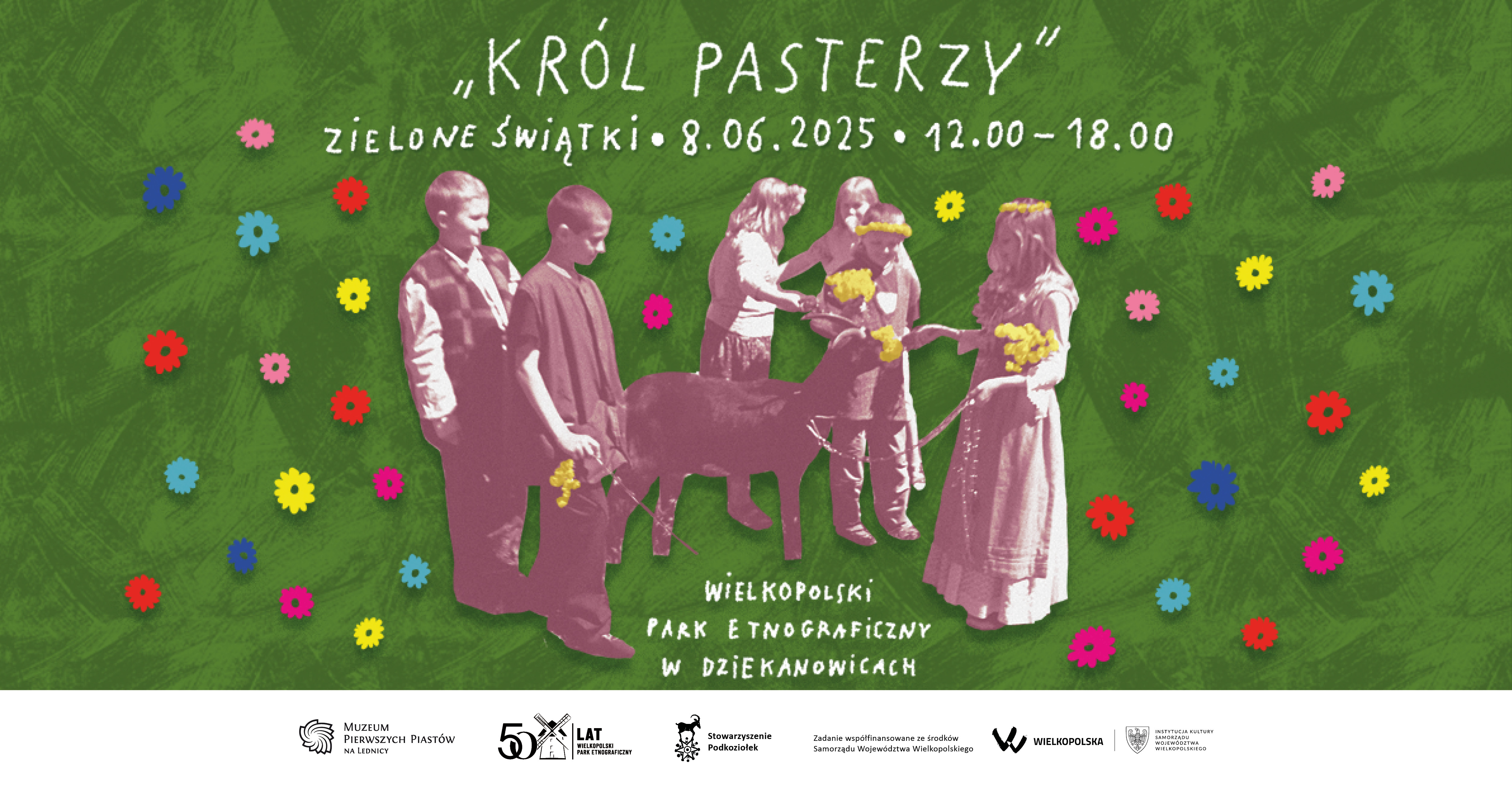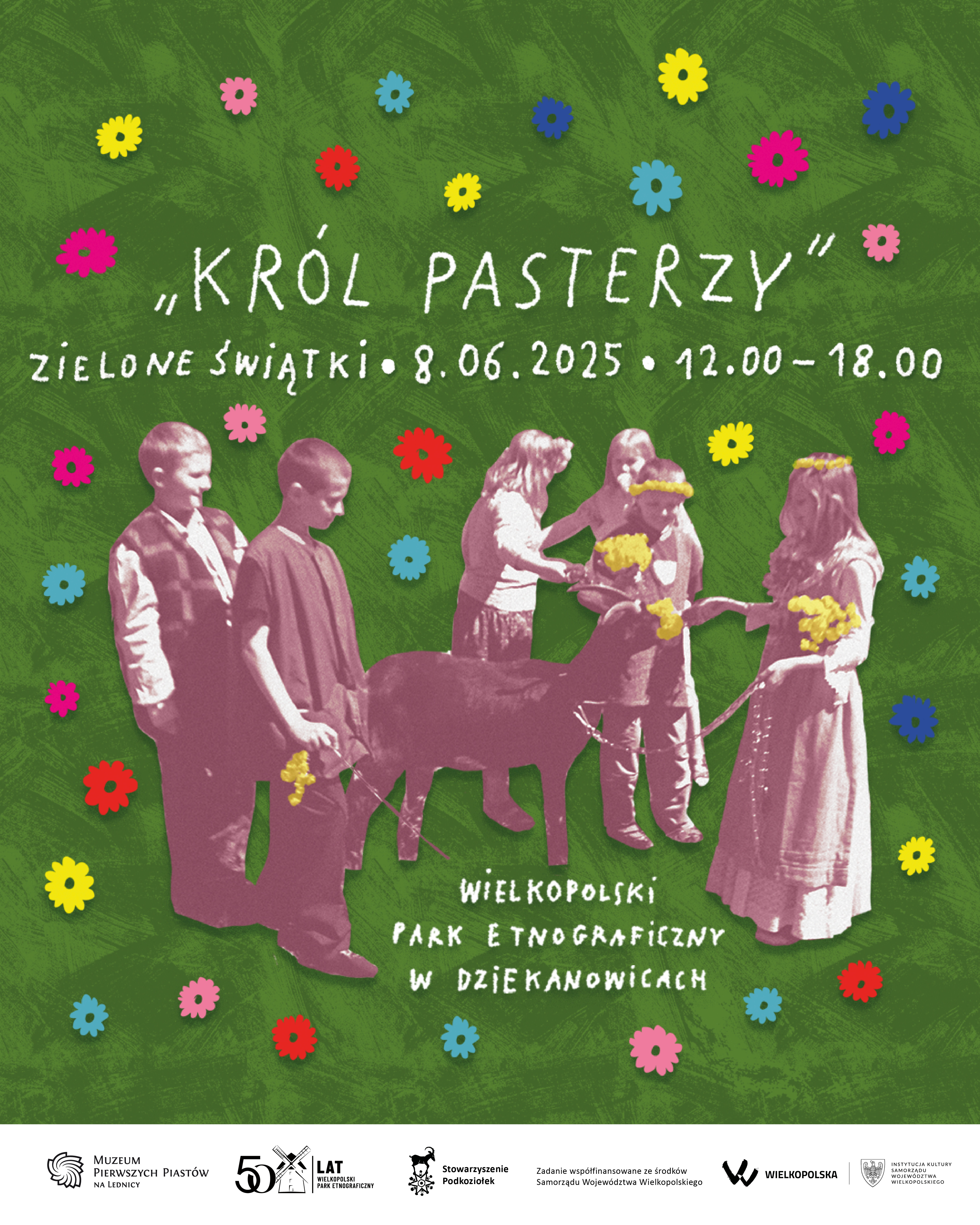 Stowarzyszenie „Podkoziołek” oraz Muzeum Pierwszych Piastów na Lednicy serdecznie zapraszają na wydarzenie „Król Pasterzy – majenie na wypasie”, które odbędzie się 8 czerwca 2025 r. w godzinach 12:00–18:00 w Wielkopolskim Parku Etnograficznym w Dziekanowicach (Dziekanowice 23B, 62-261 Lednogóra).