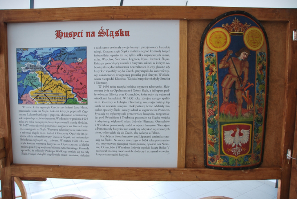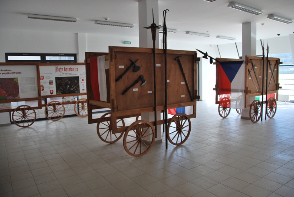 Wystawa ma charakter interaktywny. Jest to zarówno prezentacja zabytków z czasów średniowiecza jak i plansz tekstowych, map ale przede wszystkim znacznej liczby rekonstrukcji i replik uzbrojenia, ubiorów i wyposażenia wojsk husyckich z pierwszej połowy XV wieku. Po raz pierwszy wykonane zostały repliki słynnych wozów husyckich z bronią palną i drzewcową. Wszystkie kopie i repliki wykonane technikami i w sposób umożliwiający ich praktyczne zastosowanie.
