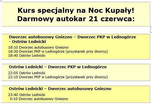 Muzeum Pierwszych Piastów na Lednicy, we współpracy z Gminą Łubowo i Starostwem Powiatowym w Gnieźnie, przygotowało kolejną atrakcję dla zwiedzających. W dniach 19–22 czerwca kursować będzie specjalny, bezpłatny autokar na trasie Gniezno – Ostrów Lednicki. Po drodze zatrzyma się m.in. przy Dworcu PKP w Lednogórze, siedzibie Muzeum oraz w Wielkopolskim Parku Etnograficznym. Dodatkowe kursy zaplanowano również na Noc Kupały, 21 czerwca. Sprawdź szczegółowe rozkłady jazdy!