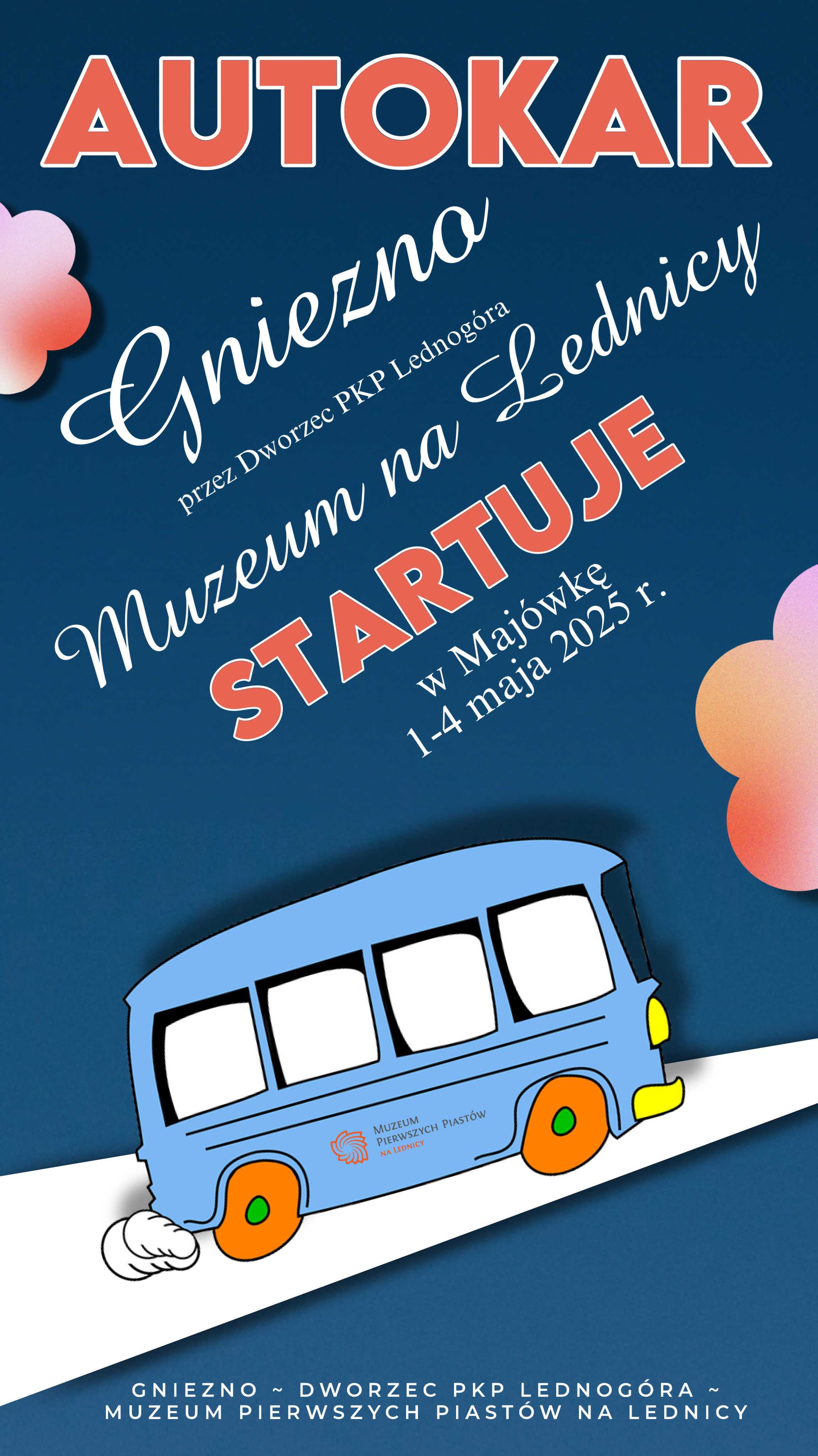 Muzeum Pierwszych Piastów na Lednicy wspólnie z Gminą Łubowo przygotowało nie lada niespodziankę na nadchodzącą Majówkę. W dniach 1–4 maja specjalny, bezpłatny autokar będzie obsługiwał trasę Gniezno - Ostrów Lednicki, po drodze zabierając pasażerów m.in. z dworca PKP w Lednogórze. Na trasie zatrzyma się również przy siedzibie naszego Muzeum oraz w Wielkopolskim Parku Etnograficznym. Sprawdź szczegółowy rozkład jazdy!