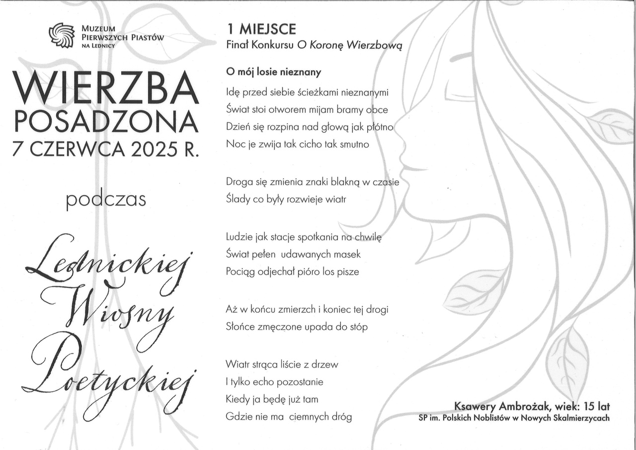 Jak można było przeczytać w zaproszeniu, Lednicka Wiosna Poetycka to wyjątkowe wydarzenie, które od lat łączy pasję do poezji i sztuki w sercu Wielkopolski. Edycja 2025, odbywająca się pod hasłem: „Korona Wierzbowa dla Korony Królewskiej”, stawia przed organizatorami nowe, ambitne cele, kierując swoje działania przede wszystkim do młodzieży by inspirować kolejne pokolenia do odkrywania piękna literatury, historii i sztuki.
