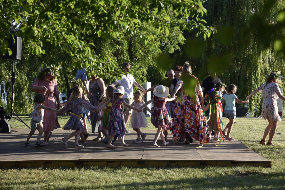 dwie dziewczyny w uplecionych wiakach z lipy robia selfie.