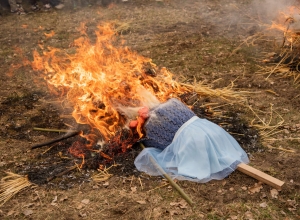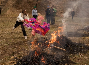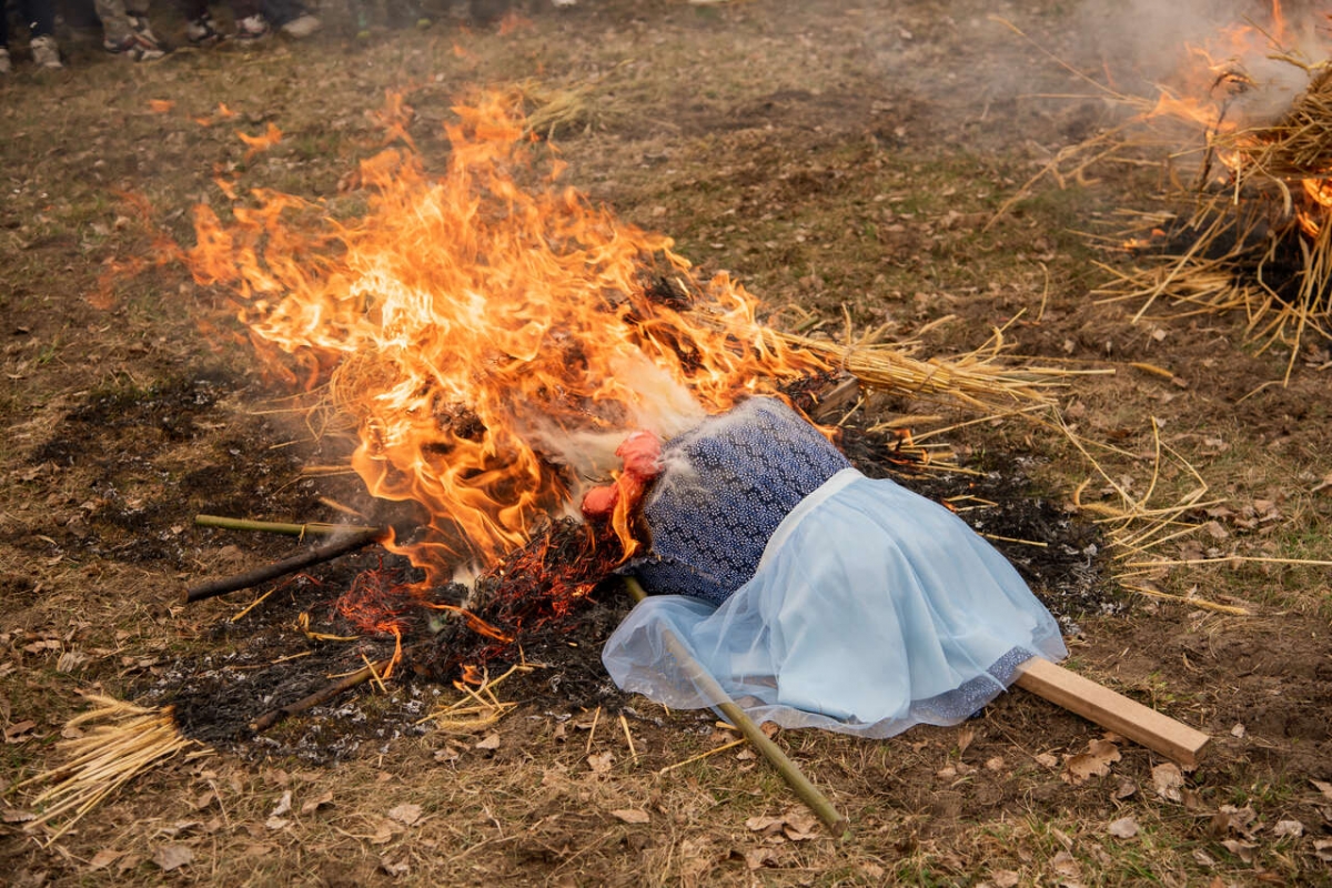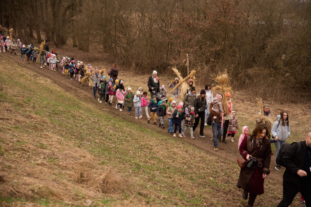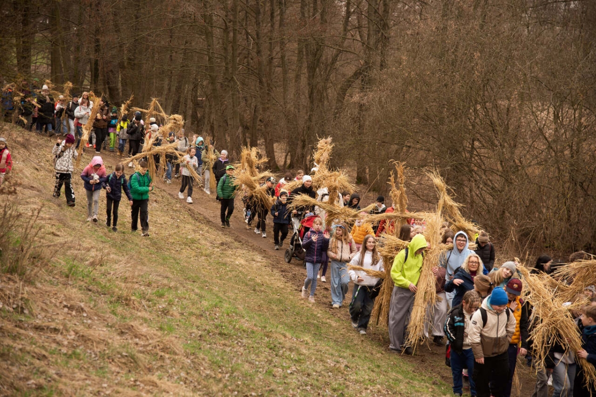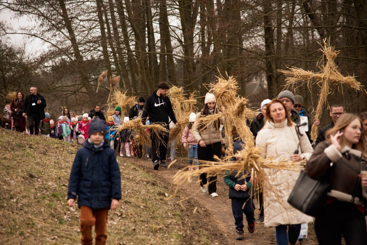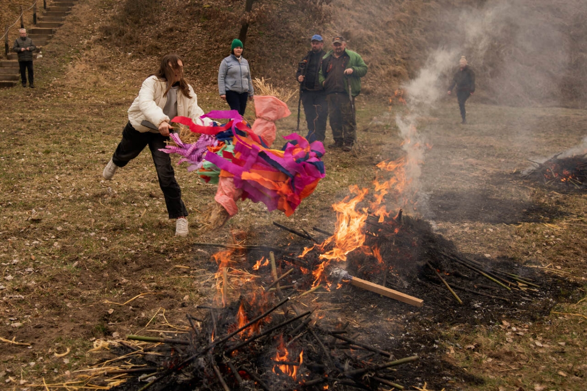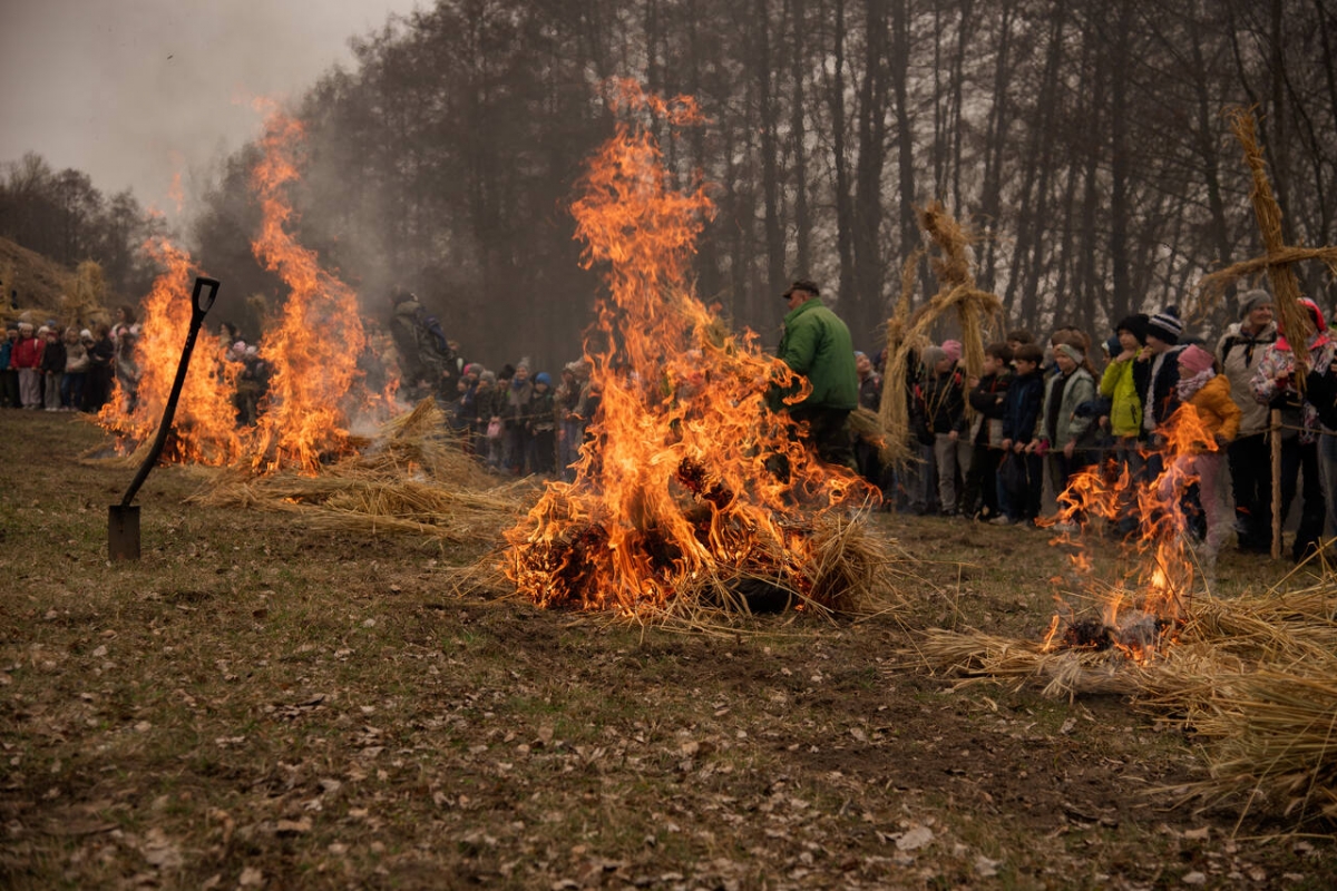 Około godziny 11:00 barwny korowód z marzannami ruszył w stronę niecki pod wzgórzem wiatracznym. Tam, przy donośnych okrzykach „Śmiercicha ze wsi, nowe lotko do wsi”, byliśmy świadkami widowiskowego spalenia kukieł. Gdy te dogorywały w ognisku, zaprosiliśmy wszystkich na przepyszną grochówkę.