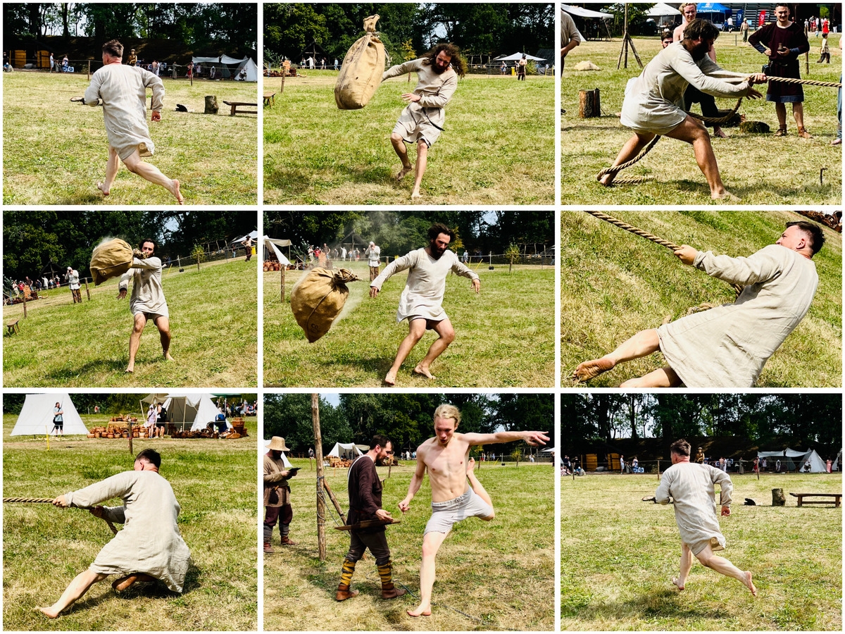- Rozgrywki turniejowe, takie jak: pojedynki na miecze, tor przeszkód, strzelanie z łuku, bieg przez bagno, przeciąganie liny, rzut toporem.