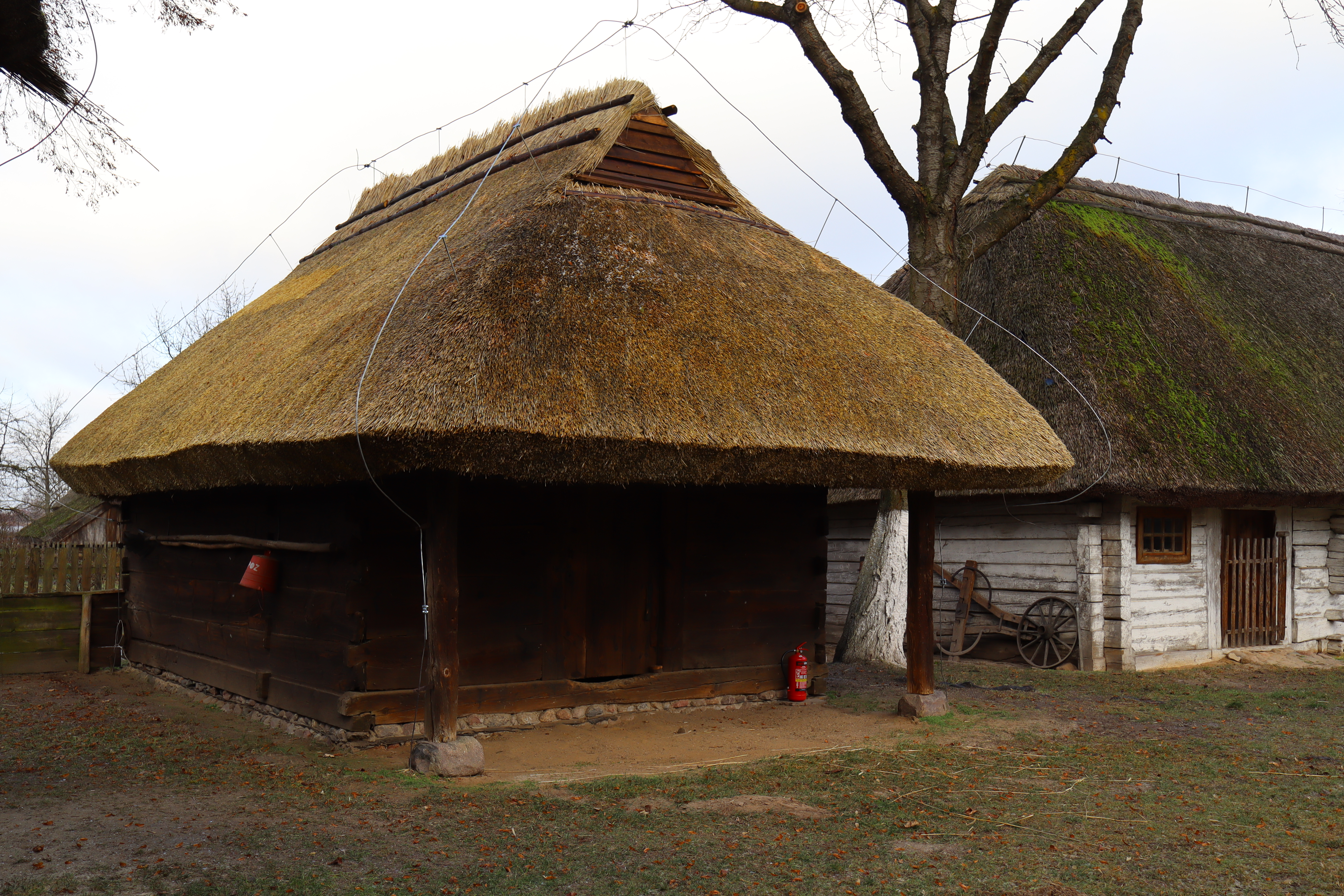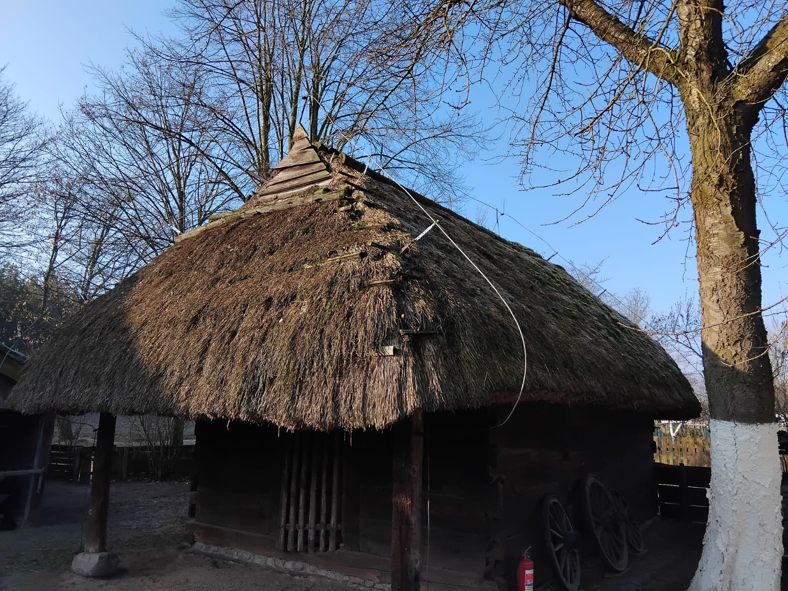 Zakończono realizację prac związanych z wymianą pokrycia dachowego wykonanego ze słomy na obiekcie „sołek” spichlerz z Wrzącej. Zakres przeprowadzonych działań obejmował nie tylko kompleksową wymianę istniejącego pokrycia dachowego, lecz także wykonanie specjalistycznych robót ciesielskich. Ich celem była wymiana uszkodzonych elementów konstrukcyjnych dachów oraz wzmocnienie więźb dachowych, w celu zapewnienia odpowiedniej stabilności i trwałości obiektu.