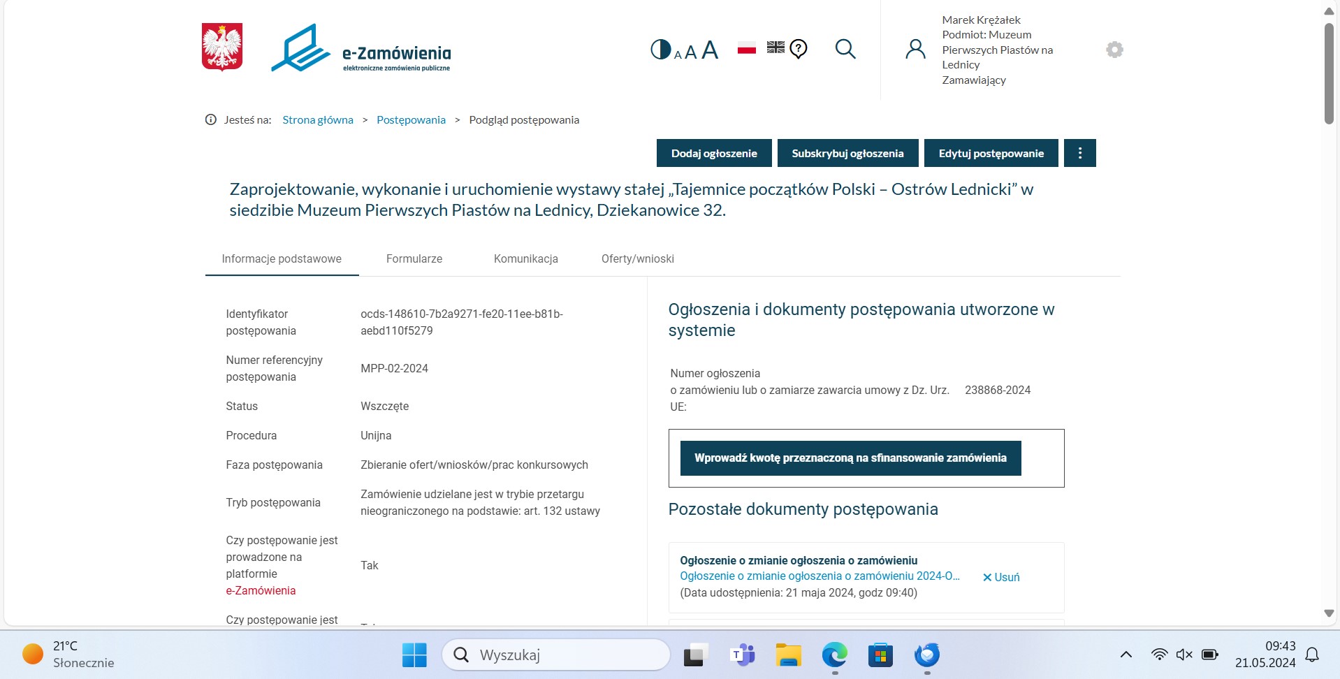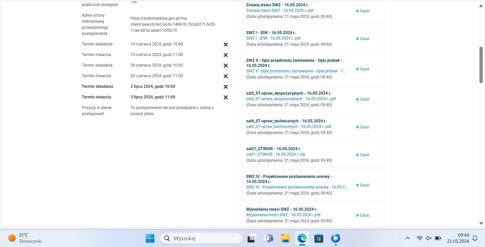 Zmiana treści SWZ - 16.05.2024 r.