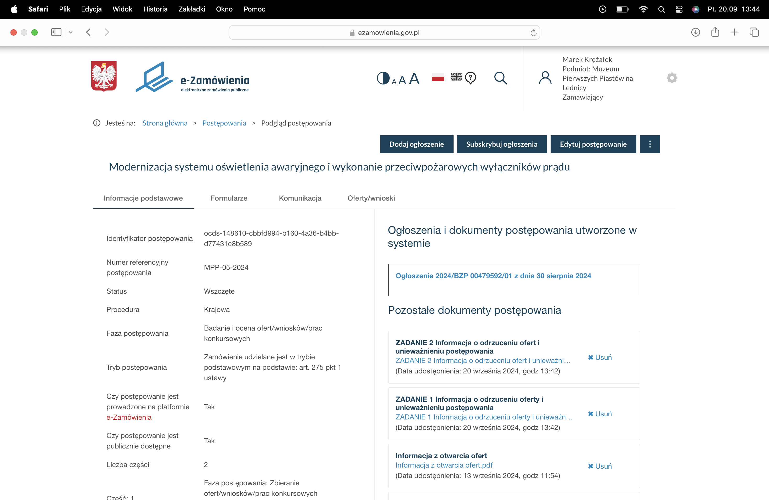 ZADANIE 1 Informacja o odrzuceniu oferty i unieważnieniu postępowania