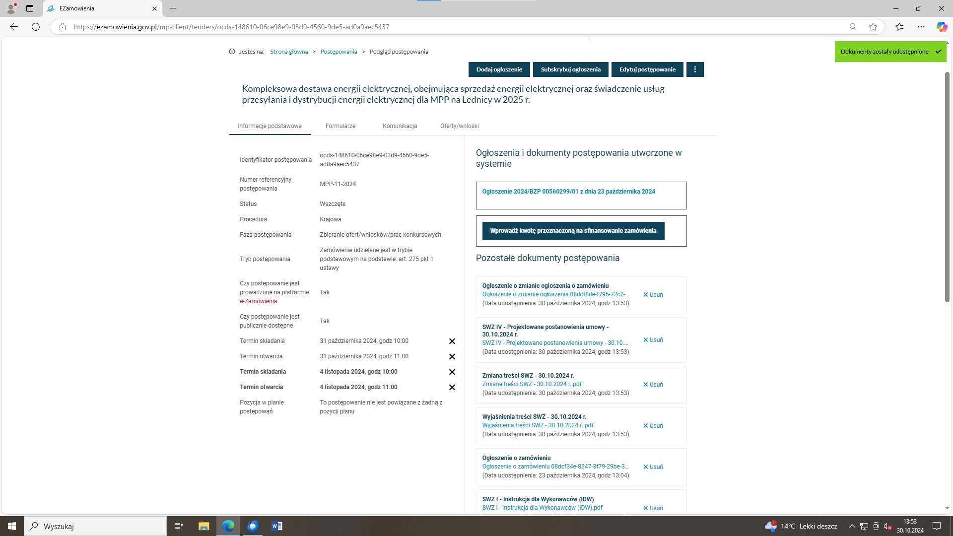 Wyjaśnienia treści SWZ - 30.10.2024 r.