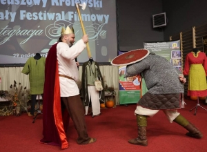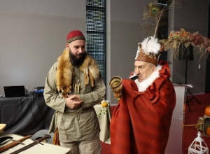 Dużym zainteresowaniem cieszyła się również prezentacja przygotowana przez edukatorów Dawida i Wojciecha. Uczestnicy wydarzenia mieli okazję zobaczyć z bliska stroje, uzbrojenie oraz rekwizyty używane w średniowieczu, a także posłuchać ciekawostek związanych z ich historią i zastosowaniem.