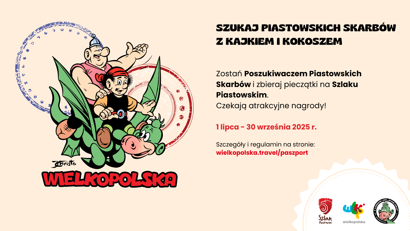 Waszymi przewodnikami na Szlaku Piastowskim będą po raz kolejny Kajko i Kokosz, czyli dwóch nieustraszonych słowiańskich wojów z legendarnego już komiksu Janusza Christy.