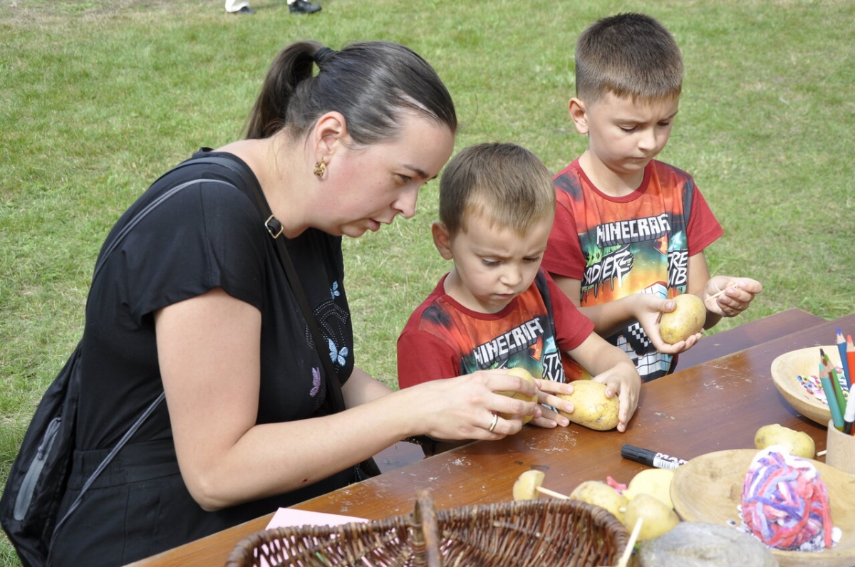 Dużym zainteresowaniem cieszyły się też warsztaty artystyczne. Podczas „pyr-perków” uczestnicy tworzyli ziemniaczane stempelki i kukiełki, a wspólne działania pięknie łączyły pokolenia dzieci uczyły się kreatywności, a starsi z sentymentem wracali do dawnych zabaw ze swojego dzieciństwa.