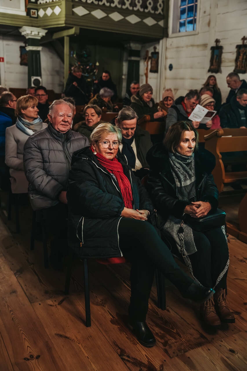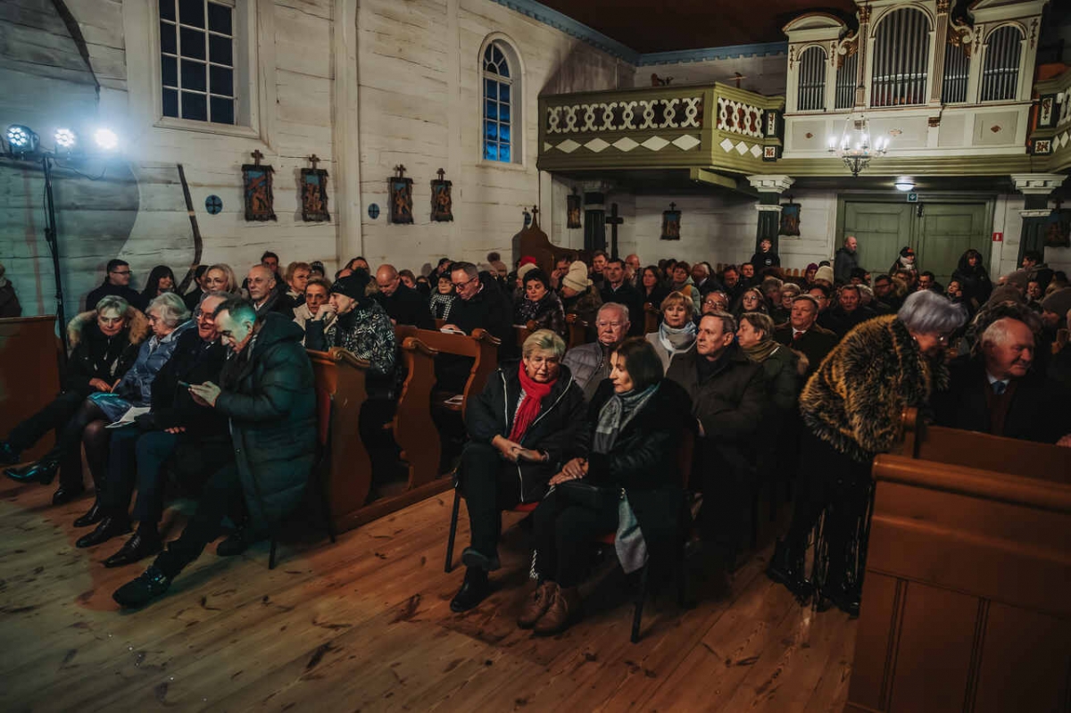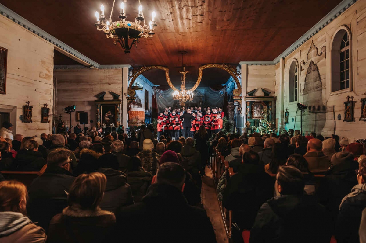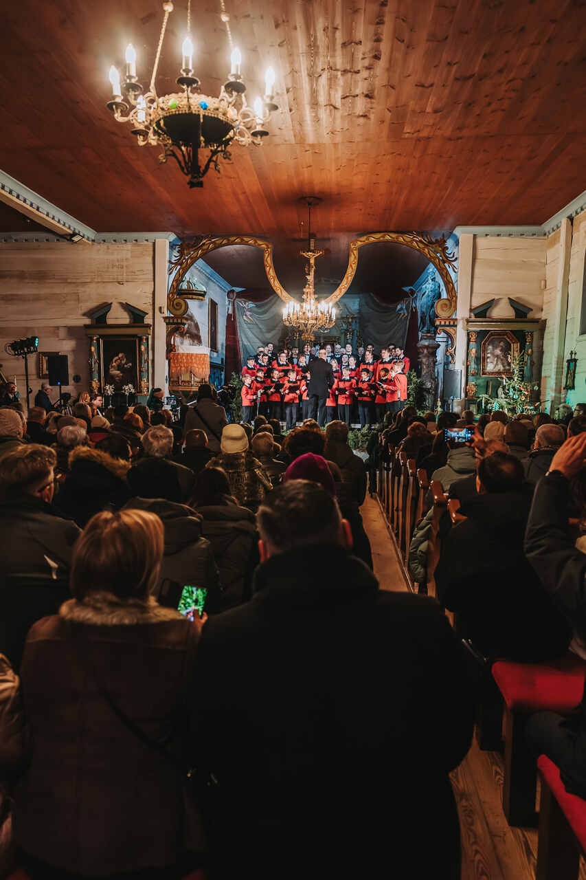 W zabytkowej przestrzeni kościoła z Wartkowic w Wielkopolskim Parku Etnograficznym chór wykonał polskie i zagraniczne kolędy, które spotkały się z entuzjastycznym przyjęciem publiczności.