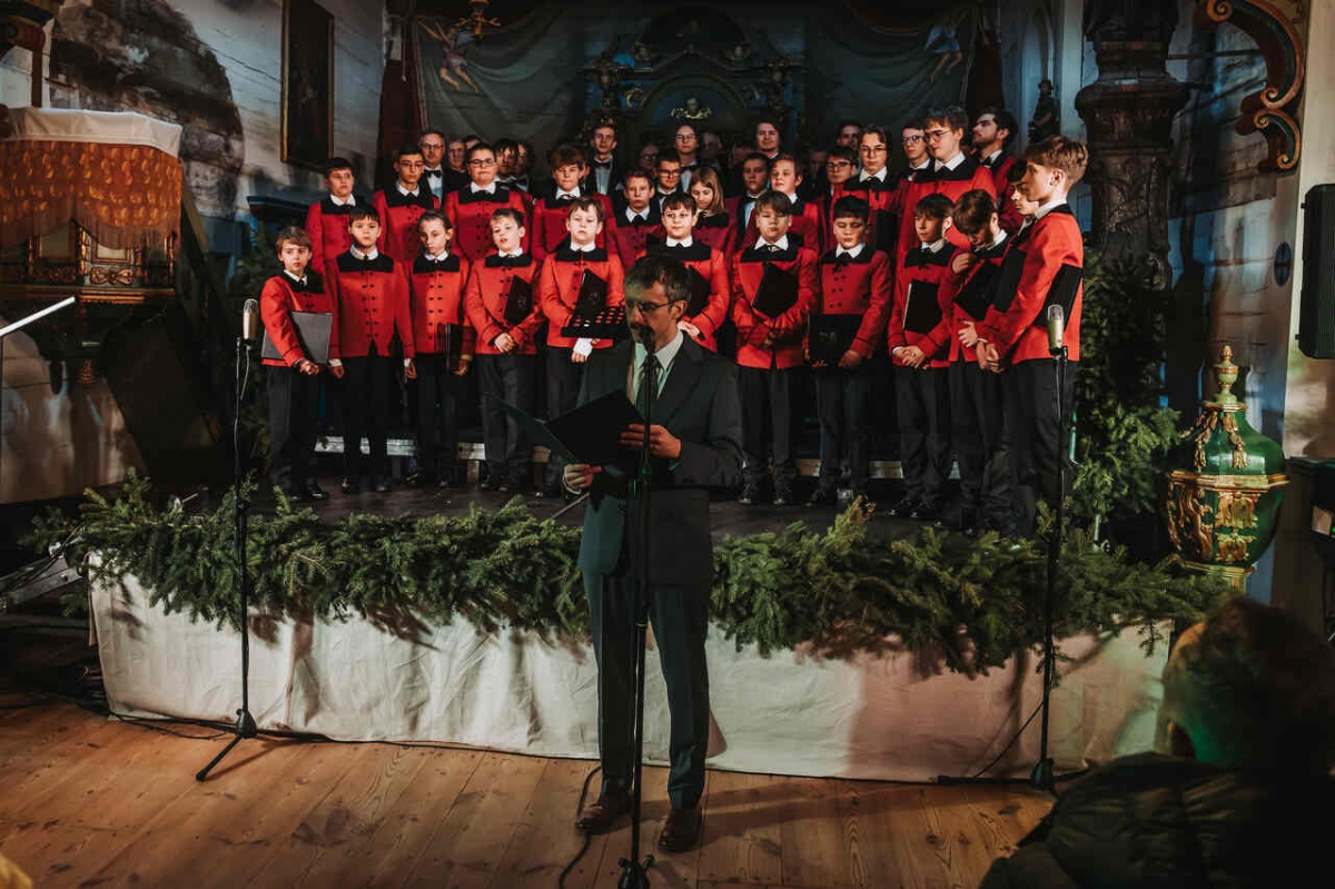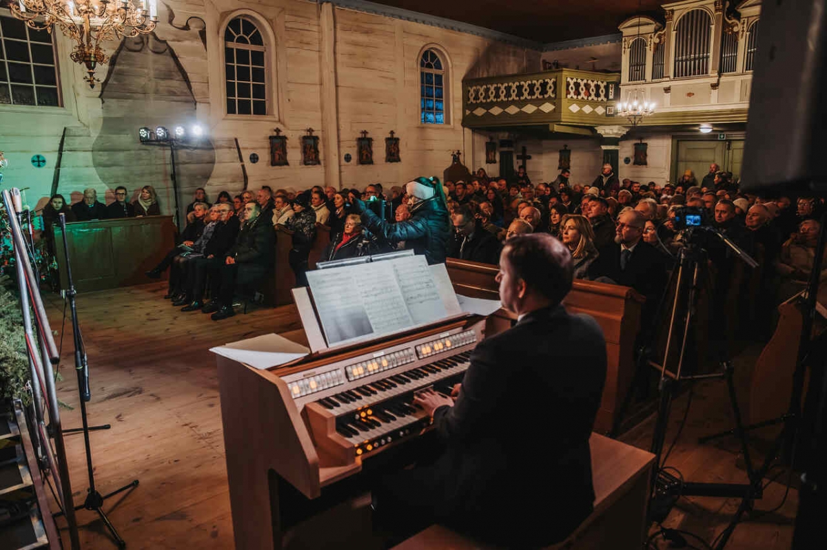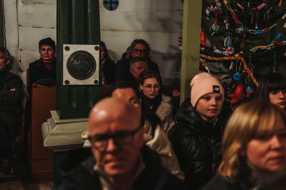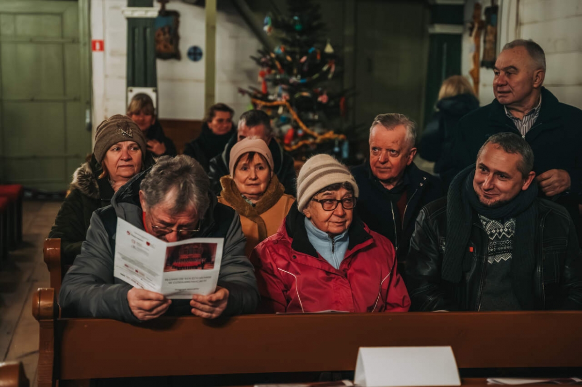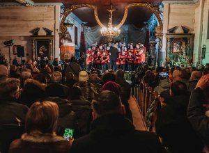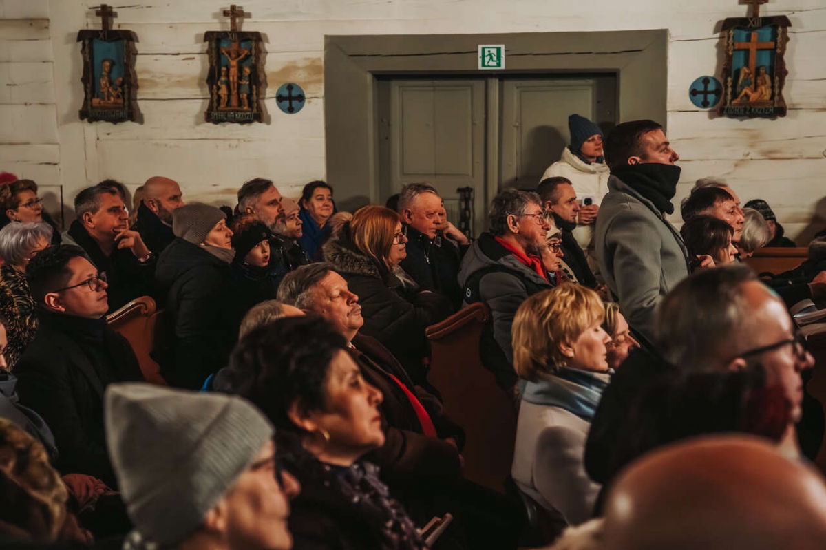 W zabytkowej przestrzeni kościoła z Wartkowic w Wielkopolskim Parku Etnograficznym chór wykonał polskie i zagraniczne kolędy, które spotkały się z entuzjastycznym przyjęciem publiczności.
