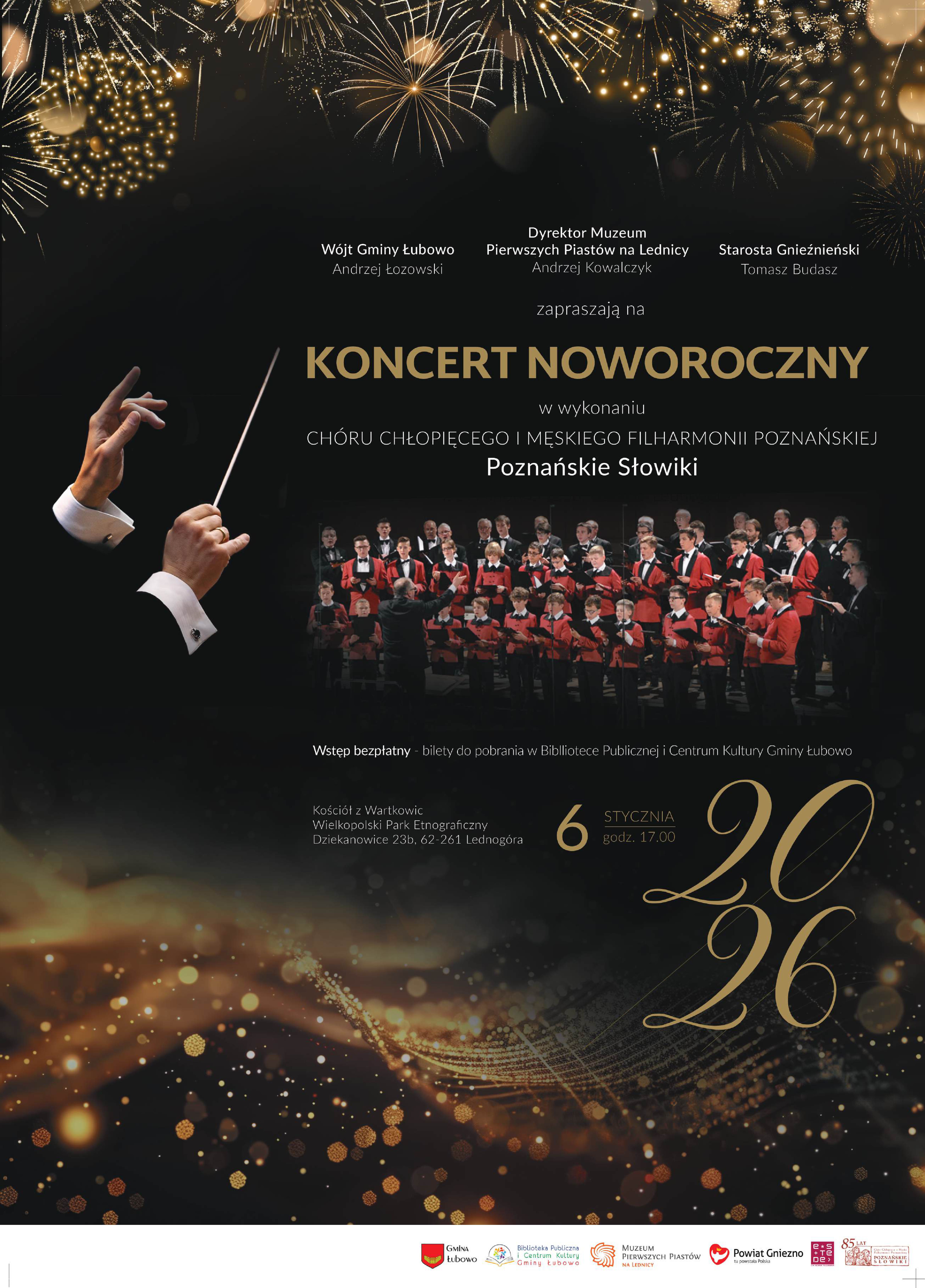 Wójt Gminy Łubowo Andrzej Łozowski, Dyrektor Muzeum Pierwszych Piastów na Lednicy Andrzej Kowalczyk oraz Starosta Gnieźnieński Tomasz Budasz zapraszają na wyjątkowy koncert noworoczny. 6 stycznia 2026 r. o godz. 17:00 w Kościele z Wartkowic w Wielkopolskim Parku Etnograficznym w Dziekanowicach wystąpi Chór Chłopięcy i Męski Filharmonii Poznańskiej – ,,Poznańskie Słowiki". Wstęp jest bezpłatny, a bilety można pobrać w Bibliotece Publicznej oraz Centrum Kultury Gminy Łubowo.