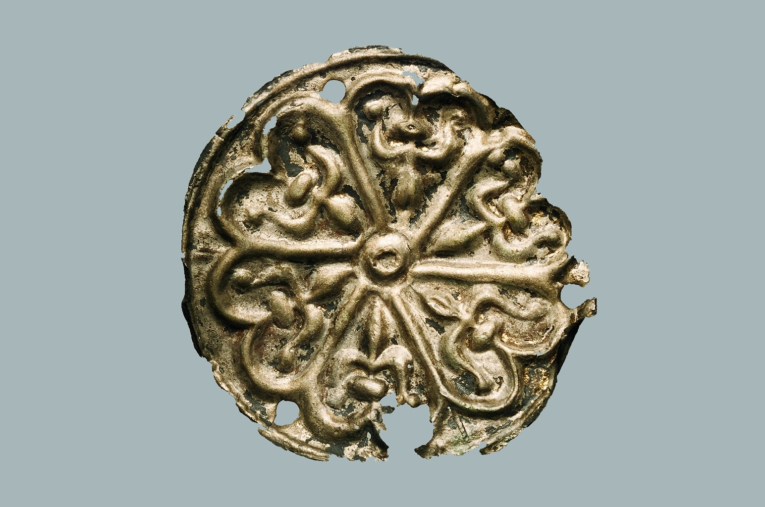 W kręgu sakralnego kultu funkcjonowały również trójramienny uchwyt do zawieszenia kadzielnicy, czy też zdobiący oprawę liturgicznej księgi krzyżyk o rozklepanych ramionach. Z kolei jeden z luksusowych przedmiotów, tj. nóż inkrustowany złotymi krzyżykami, akcentował najpewniej związek jego właściciela z chrześcijańską wiarą.