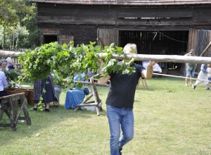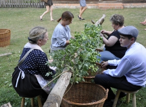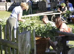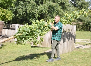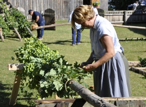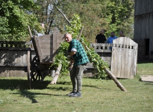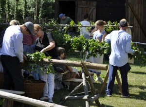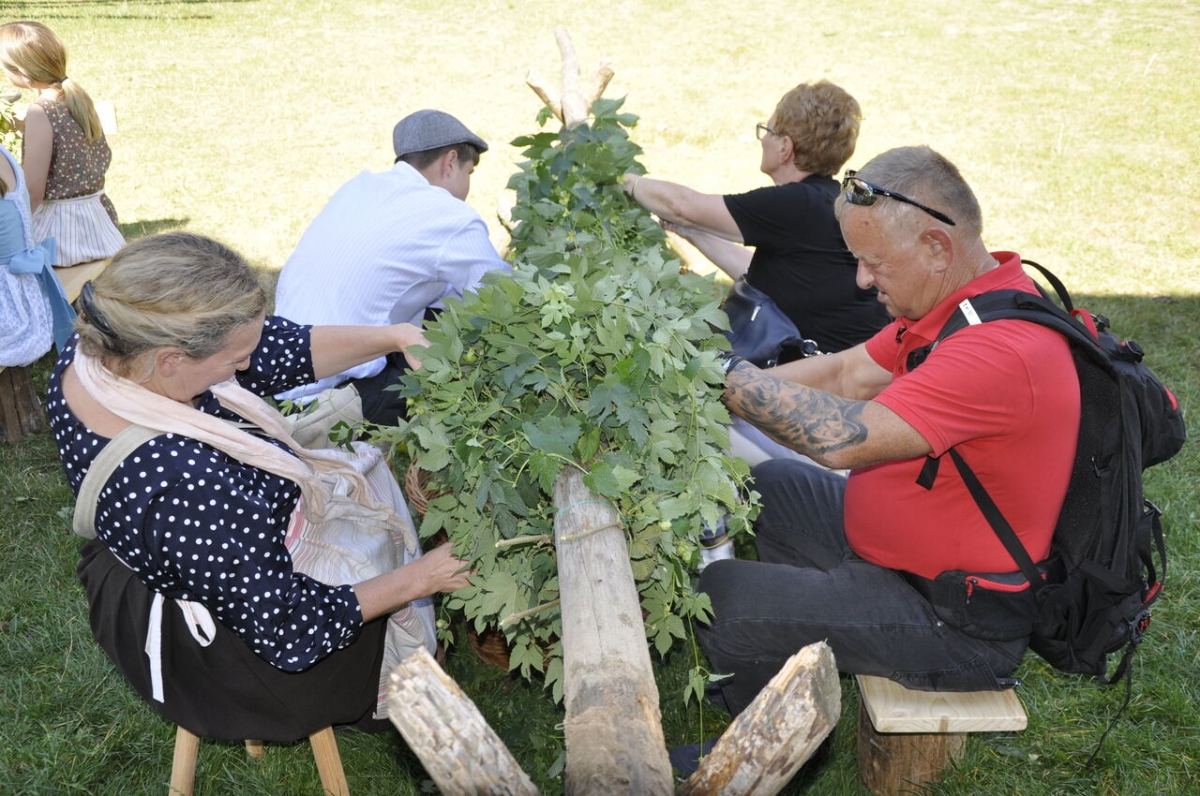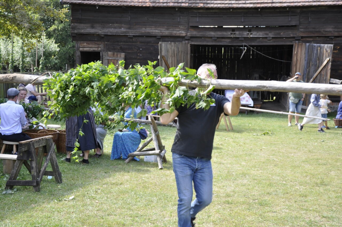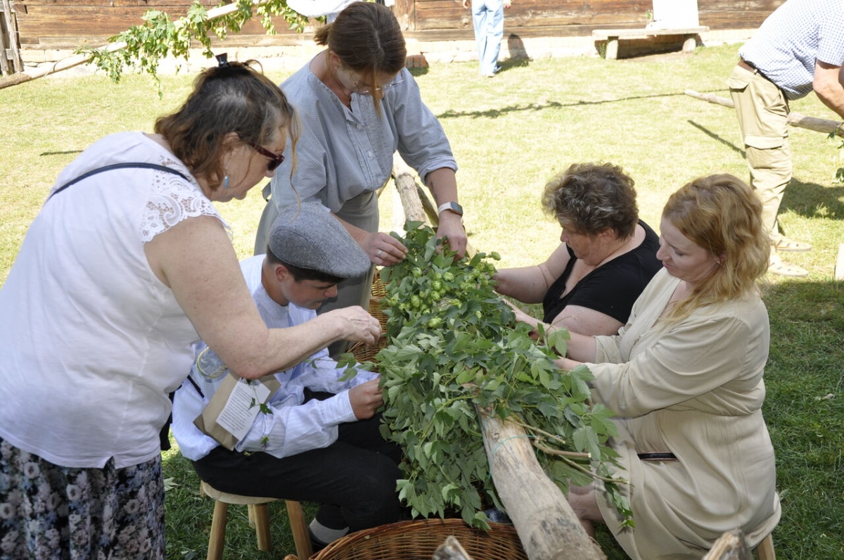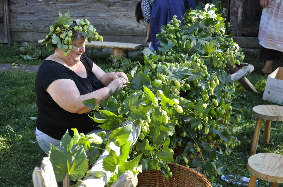 Najważniejszym punktem dnia były oczywiście żniwa. Obrywanie szyszek odbywało się w zagrodzie olęderskiej z nowotomyskiego, gdzie zaprezentowano tradycyjne metody zbioru chmielu. Surowiec zrywany był ręcznie, sortowany według wielkości i przygotowywany do suszenia.