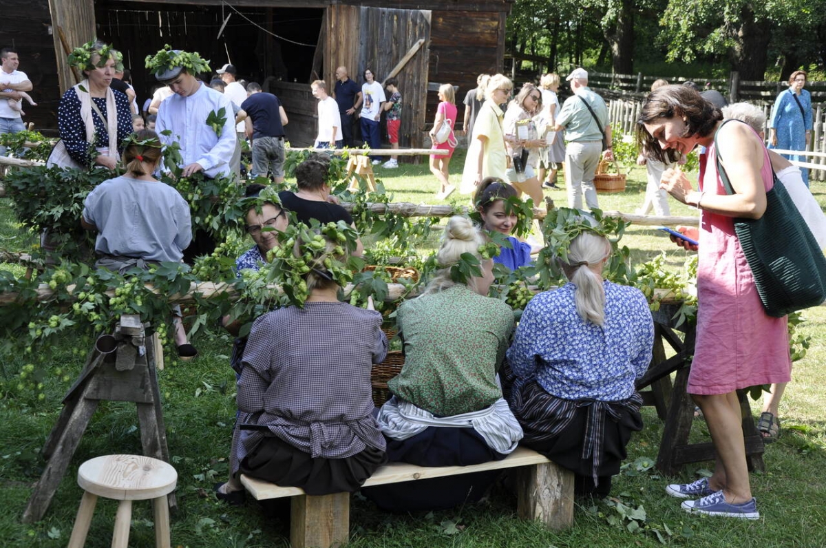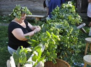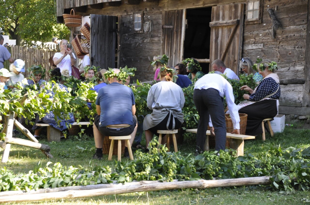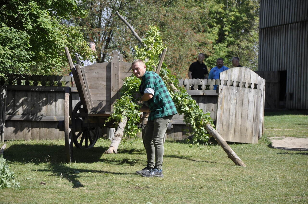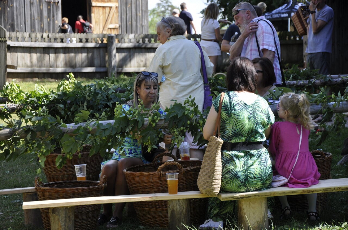 Tegoroczne święto chmielu odbywało się w idealnych warunkach pogodowych - słoneczny dzień i przyjemna temperatura sprzyjały zarówno pracy przy zbiorach, jak i rodzinnemu zwiedzaniu Skansenu. Frekwencja dopisała, już od godzin przedpołudniowych alejkami Parku przechadzały się setki odwiedzających.