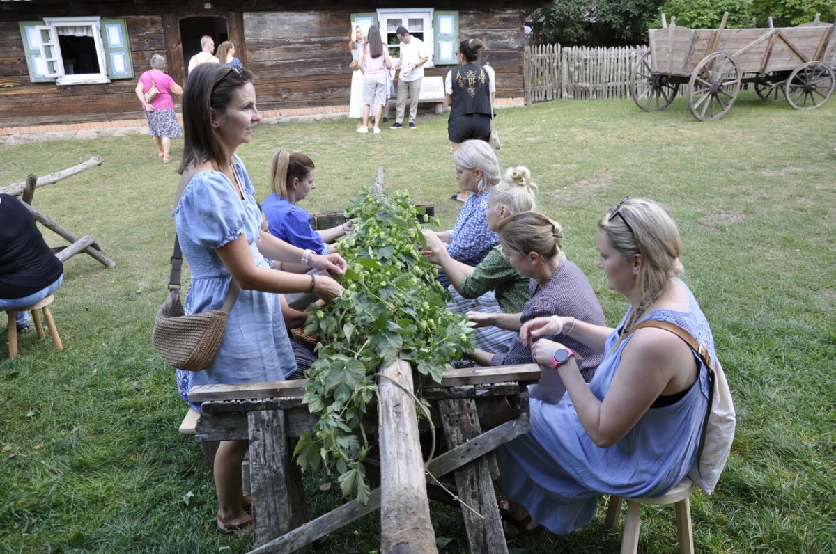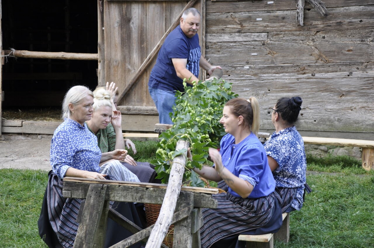 - Żniwa chmielowe zorganizowaliśmy 31 sierpnia, ponieważ następnego dnia dzieci idą do szkoły, a we wsiach nowotomyskich żniwa chmielowe organizowano właśnie do końca wakacji. Dlatego, że dzieci bardzo intensywnie pomagały w zbiorze chmielu i dlatego starano się - przy dobrej pogodzie - robić tak, by te żniwa były zakończone przed rozpoczęciem roku szkolnego - tłumaczy Adriana Garbatowska, kierownik Wielkopolskiego Parku Etnograficznego w Dziekanowicach.